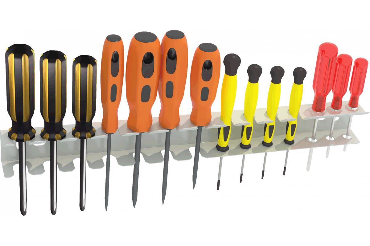 Держатель отверток DO-14 может быть установлен в качестве дополнения на инструментальную панель верстаков серии ВС, ВТ, ВД, ВДТ, а так же на перфорированный экран стеллажей серии СК, МКФ, СГР.