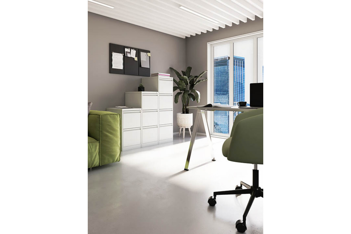 Благодаря универсальному светло-серому цвету и лаконичному дизайну DK-2 легко вписывается в любой офисный интерьер. Компактная высота позволяет размещать шкаф под рабочими столами, рядом с архивными стеллажами или в небольших помещениях, при этом модель остаётся вместительной и функциональной.