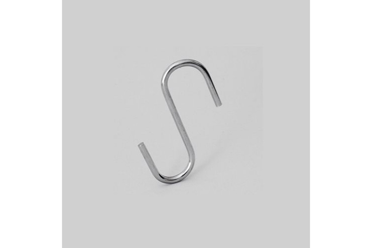 Крючок S-образный может использоваться для представления навесной продукции и большого числа аналогичных целей.  С их помощью  можно вывешивать плечики для одежды или габаритные товары на торговые сетки, стойки и другие типы торгового оборудования.