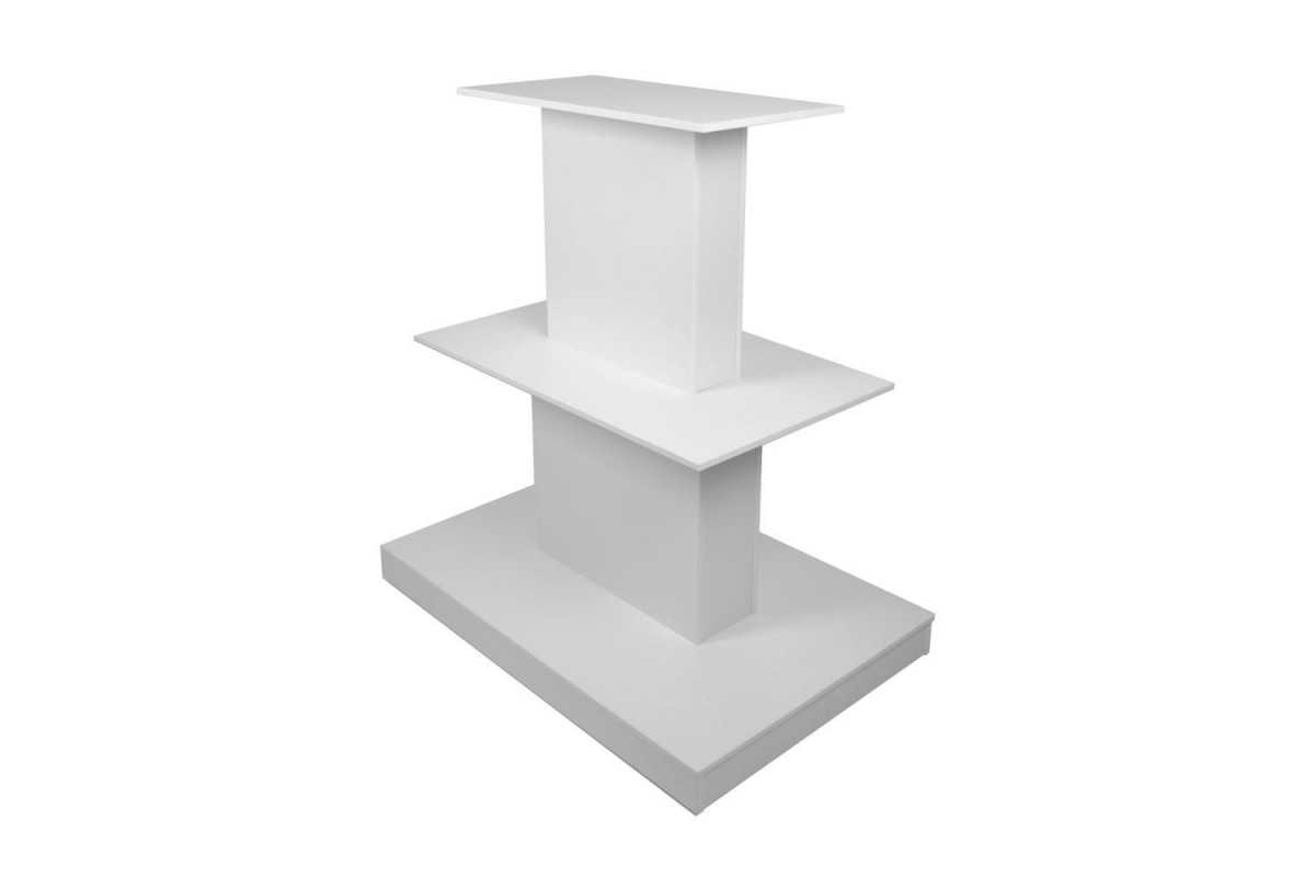 ExTL-80х120-60x100-40х80-130H Экспостенд (с тремя уровнями),Н1300,ЛДСП 16мм,белый шагрень,с колёсами в Новокузнецке