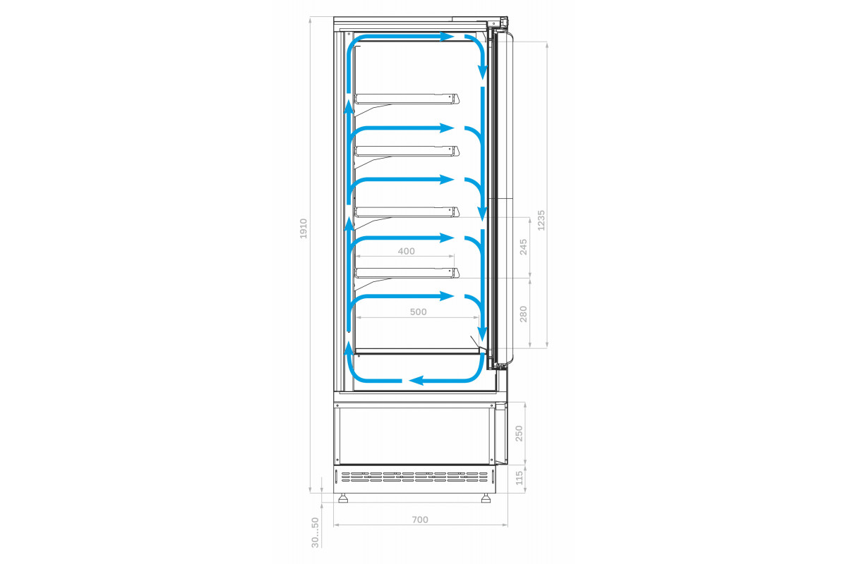 - Глубина выкладки полок 400 мм. Глубина выкладки базовой полки 500 мм.