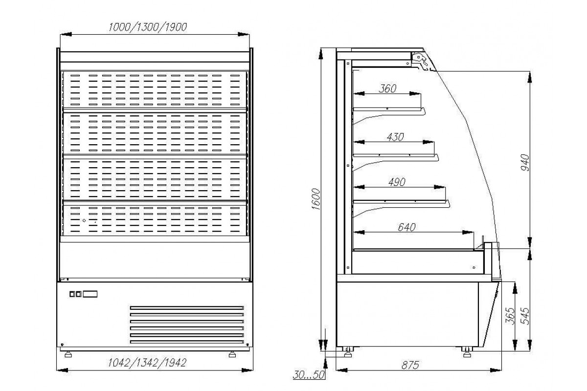 Холодильная горка гастрономическая Carboma F16-08 VM 1,9-2 0200 тонир.cтеклопакет (Carboma 1600/875 ВХСп-1,9) (9005 цвет черный)