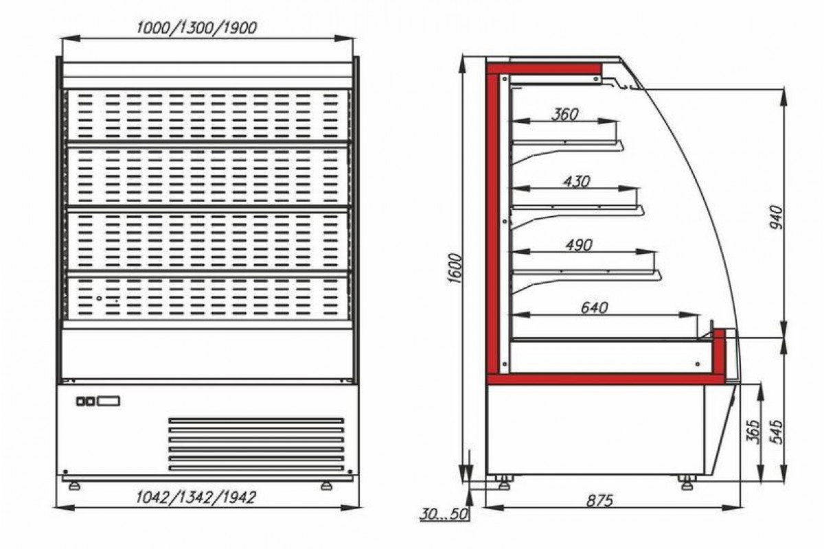 Холодильная горка гастрономическая Carboma F16-08 VM 1,9-2 0200 тонир.cтеклопакет (Carboma 1600/875 ВХСп-1,9, цвет по схеме (фронт стандартный цвет)