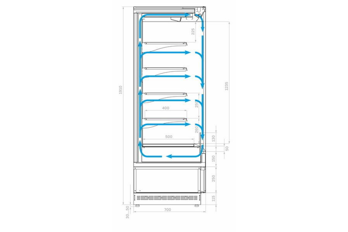 Холодильная горка гастрономическая Carboma FC 20-07 VM 1,3-2 0030 (версия 2.0) 9006-9005 - элегантно впишется во все торговые зоны от магазинов по соседству до гипермаркетов. Размещение большого количества товара на минимально возможном пространстве. Витрина должна быть установлена не ближе 2 м от отопительных приборов. Запрещается эксплуатация витрины при попадании на нее прямых солнечных лучей, воздушных потоков от кондиционеров, вентиляторов и обогревателей. Просвет между задней стенкой витрины и стеной помещения должен быть не менее 0,25 м. Запрещается загораживать воздуховоды. При дождливой или влажной погоде на витрине может выпадать конденсат. Это не является неисправностью. В этом случае время от времени протирайте витрину мягкой тканью.