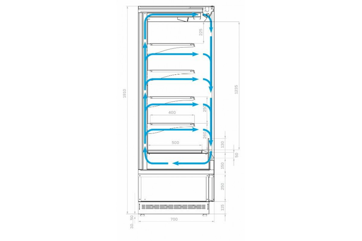- Витрина должна быть установлена не ближе 2 м от отопительных приборов. Запрещается эксплуатация витрины при попадании на нее прямых солнечных лучей, воздушных потоков от кондиционеров, вентиляторов и обогревателей;
