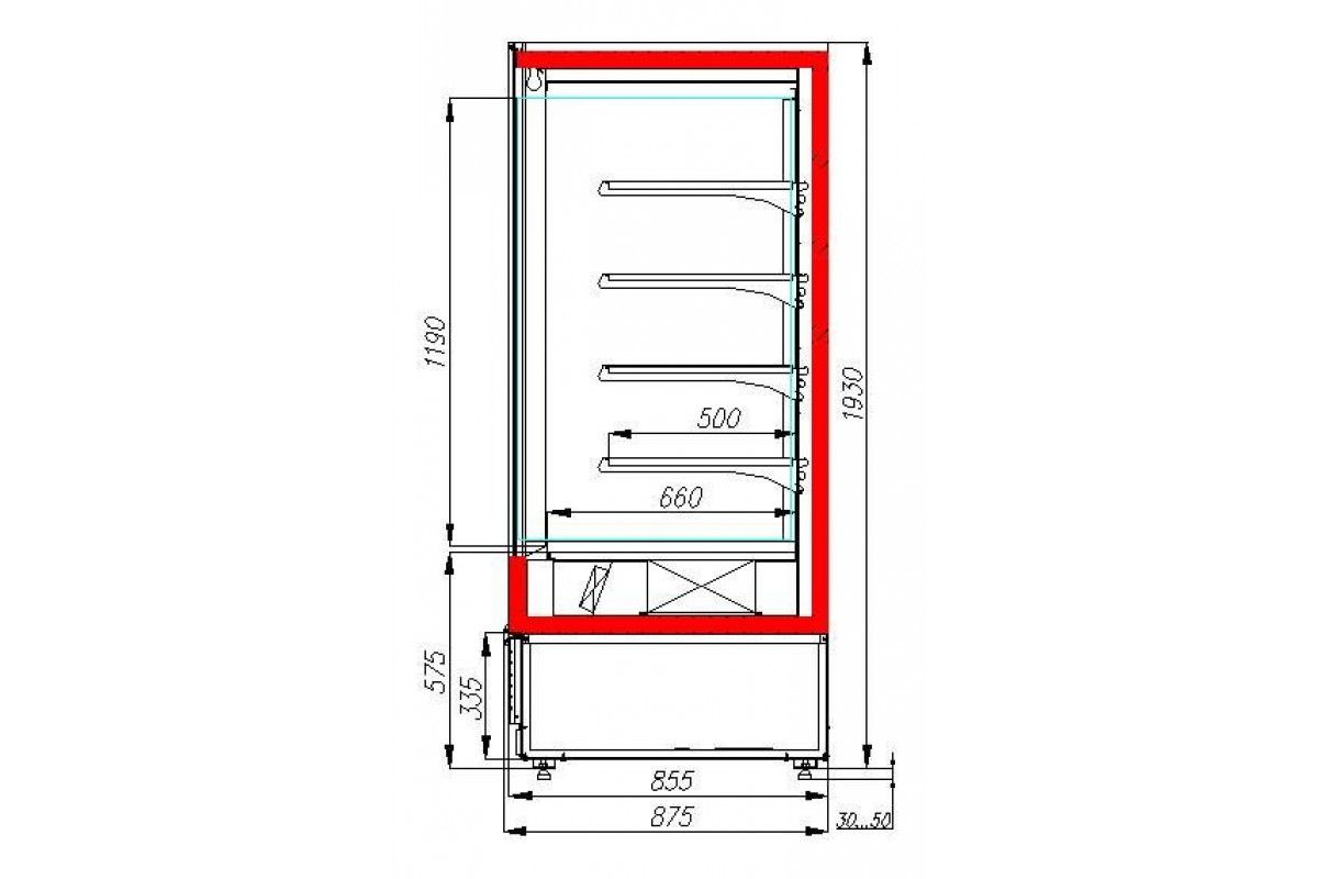Горка холодильная Carboma Cube 1930/875 ВХСп-1,3 – витрина открытого типа с температурой 0 … +7 °С и прозрачными боковыми стенками. Назначение: презентация и краткосрочное хранение фасованной продукции в индивидуальной упаковке, не нуждающейся в замораживании: молочной продукции, свежих мяса и птицы, кремовых и творожных десертов, кулинарной продукции в лотках.