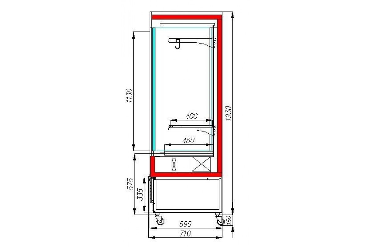 - колесные опоры 150 мм высотой для мобильности витрины и загрузки непосредственно на складе;