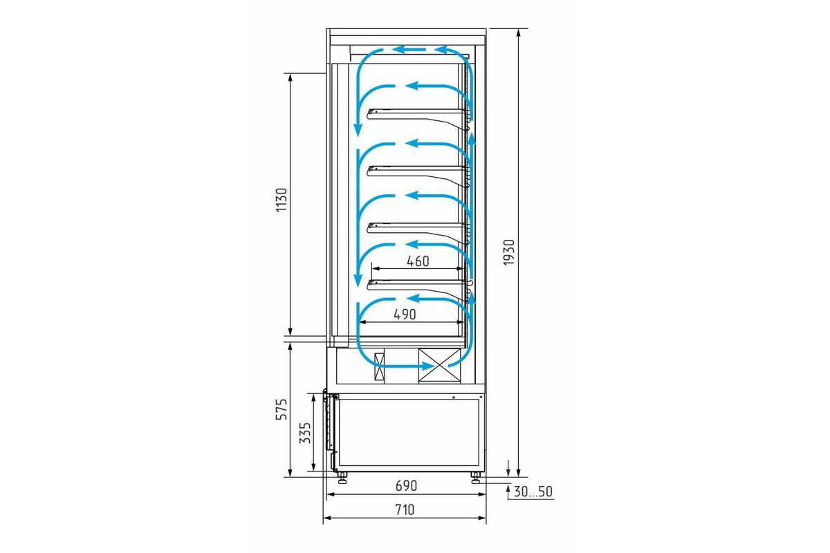 Холодильная горка универсальная Carboma FC20-07 VV 2,5-1 Standart (фронт X5, цвет по схеме, фронт стандартный цвет)