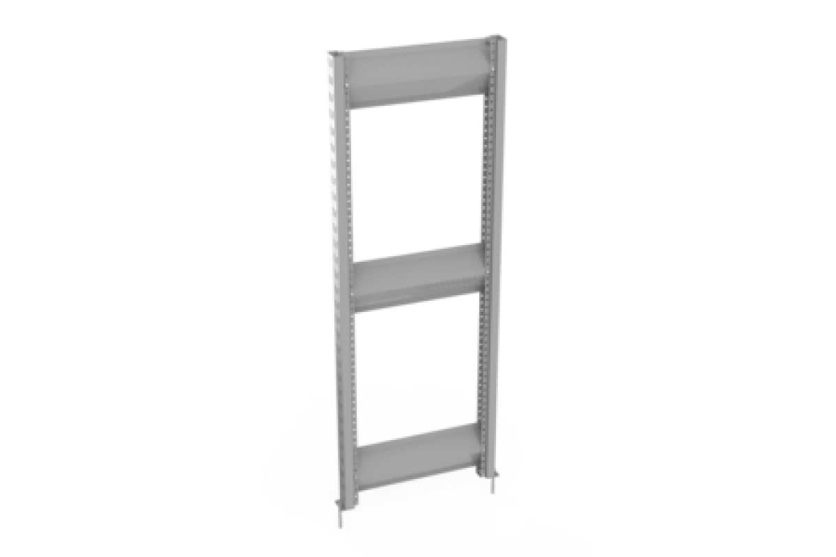 Имеют П-образную форму с двумя дополнительными гибами 12х19 мм., направленными к центру стойки. По всей длине стойки имеются по два ряда прямоугольных отверстий, выполненных под углом, шаг отверстий 50 мм. Возможная длина стоек 1500, 2000 и 2500 мм.