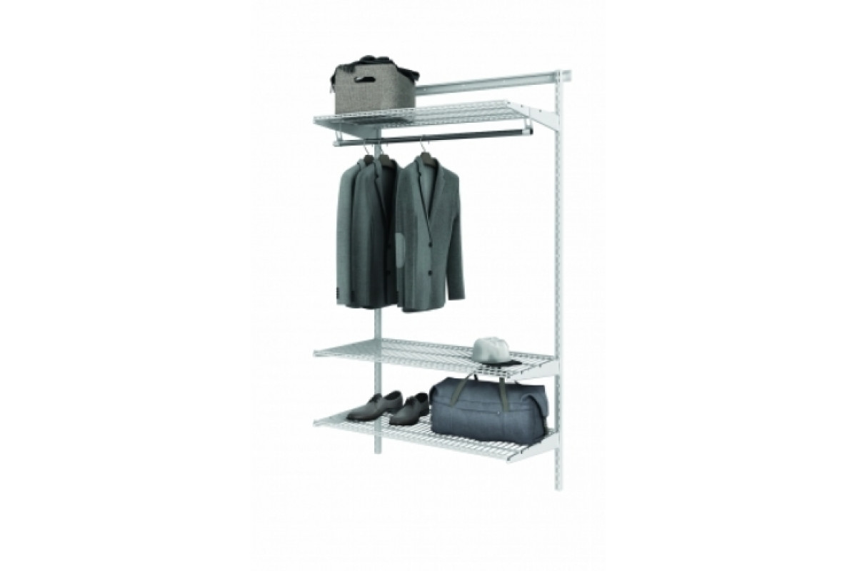 Гардеробная системы Титан GS-350S и Титан GS-450S - это базовый комплект для любого типа помещения. Полки могут размещаться на любом удобном уровне, шаг установки кронштейнов для полок 32 мм. В комплект входят несущий рельс и навесные направляющие, пол
