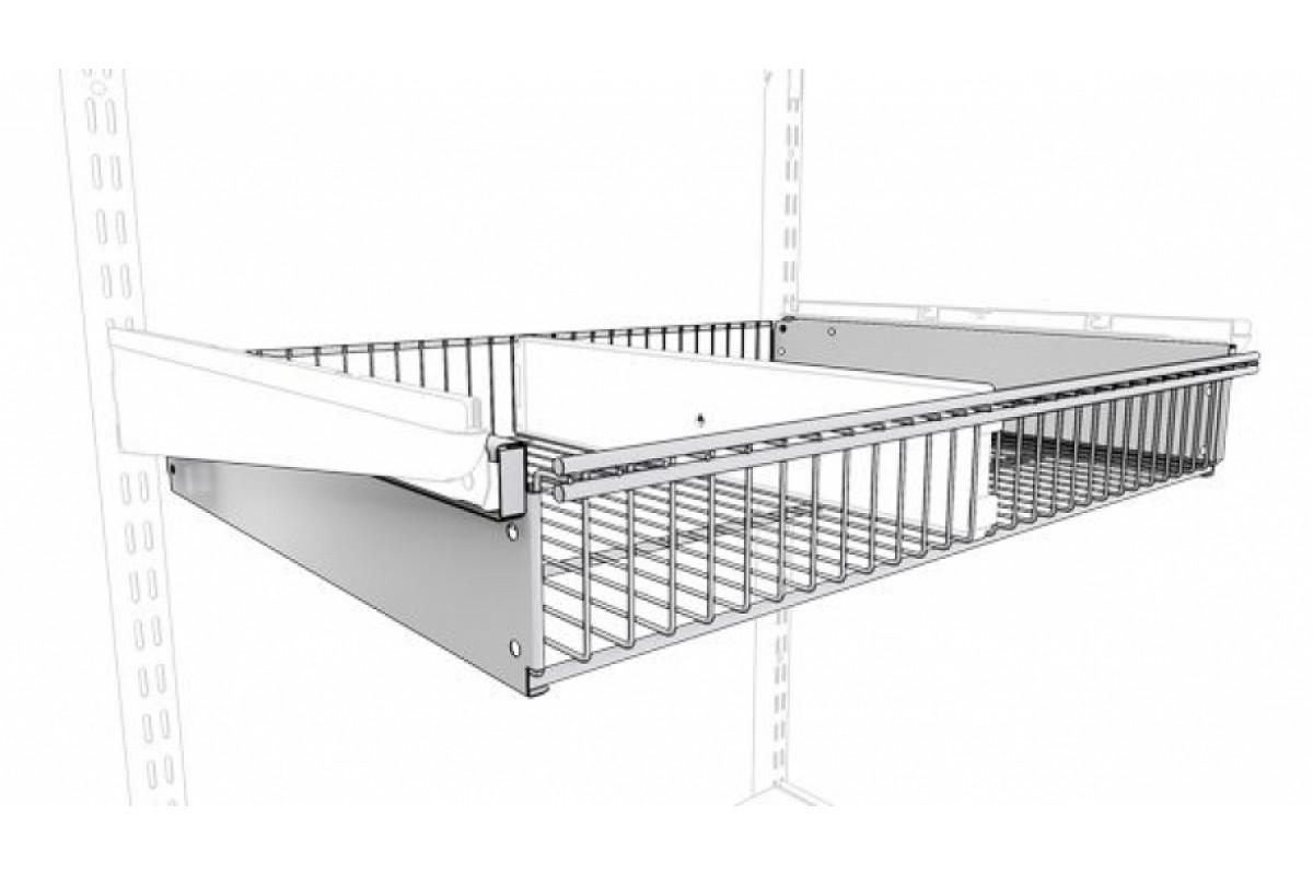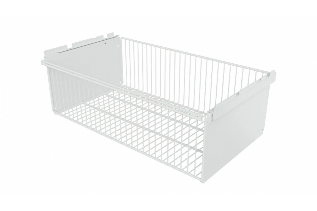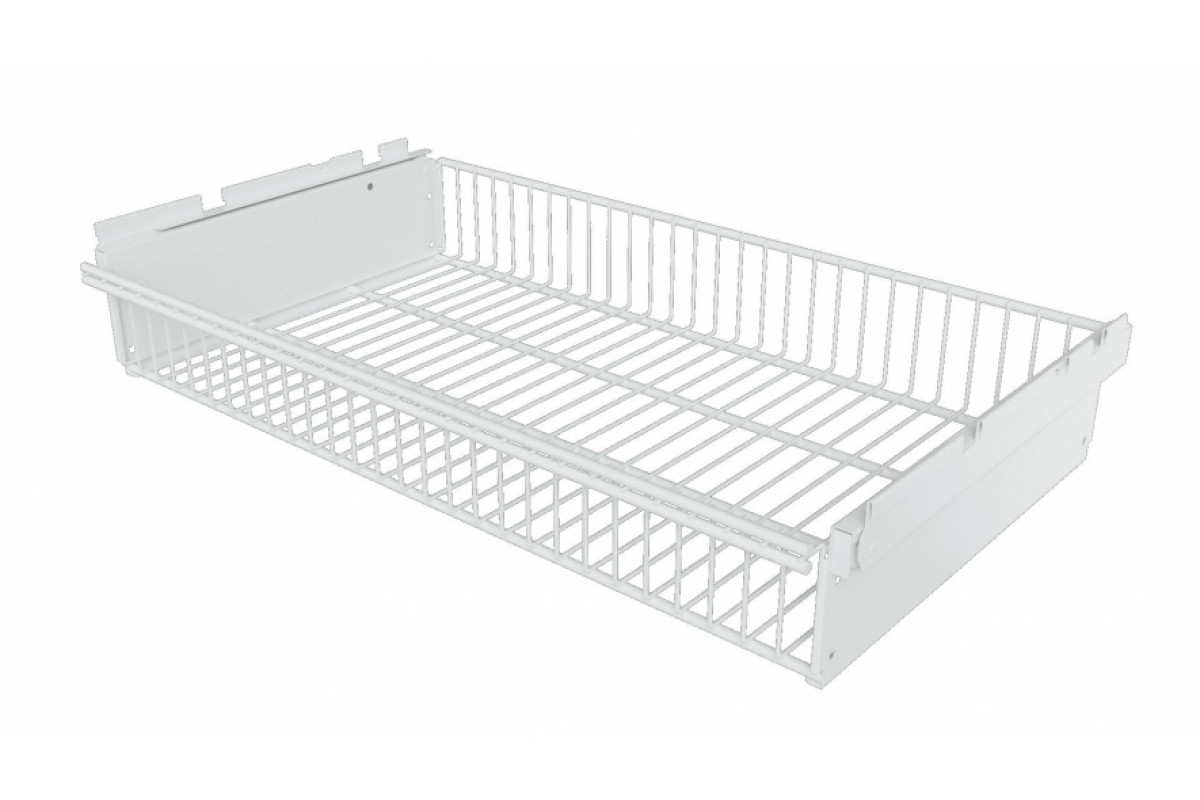 Выдвижная корзина делается из проволоки, такой же как и сетчатые полки. Средний вариант по цене, но имеющий наибольшую грузоподъемность. Учитывая крупноячеистую структуру, выдвижные корзины являются отличным вариант для хранения одежды, поскольку обесп