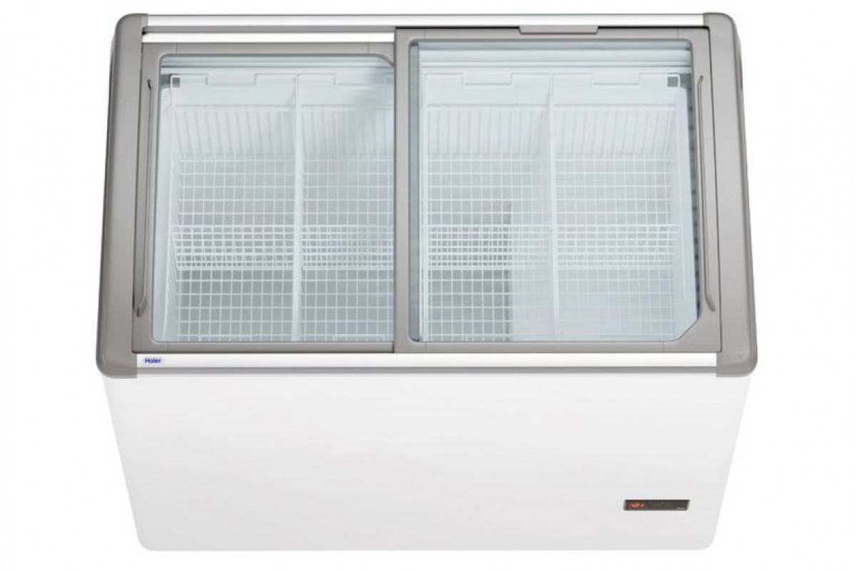 HAIER SD-516AE представляет собой морозильный ларь. Устройство рассчитано на применение в сфере общественного питания, торговли, предназначено для заморозки, хранения, предпродажной демонстрации продуктов, полуфабрикатов. В камере объемом объемом 513 л поддерживается температура от -24 до -18 °С. Для управления используется электронная панель управления с сенсорным дисплеем. На корпусе установлены раздвижные дверцы из изогнутого теплоотражающего стекла, дополнительно предусмотрен замок. Для изготовления и конденсатора и испарителя используется оцинкованная сталь. Верхняя рамка выполнена из формованного ABS пластика.