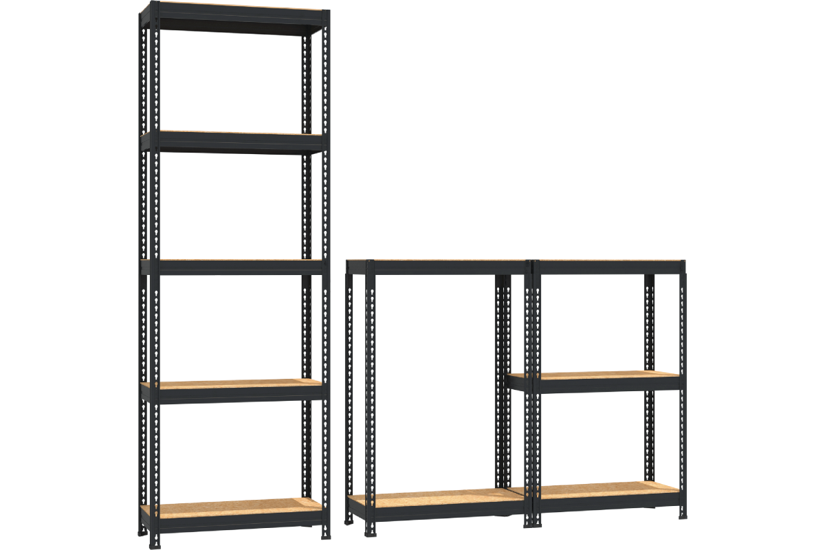 - Возможен комбинированный вариант сборки комплекта из 2-х стеллажей высотой 0.9 м с двумя и тремя полками. Максимальная равномерно распределенная нагрузка в этом варианте сборки на каждый ярус не должна превышать 170 кг.