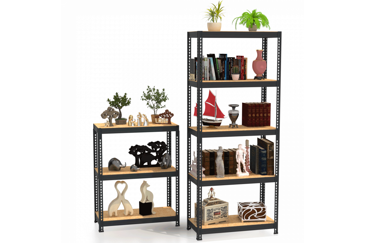 - Возможен комбинированный вариант сборки комплекта из 2-х стеллажей высотой 0.9 м с двумя и тремя полками. Максимальная равномерно распределенная нагрузка в этом варианте сборки на каждый ярус не должна превышать 170 кг.