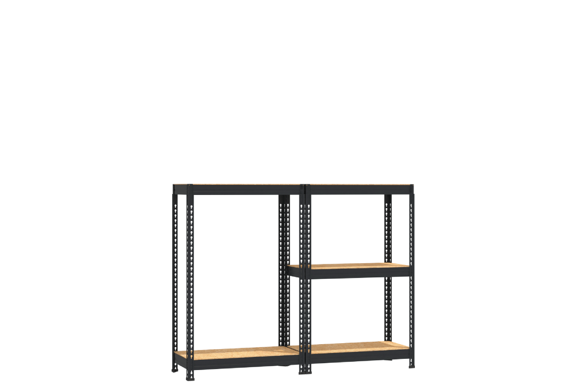 - Возможен комбинированный вариант сборки комплекта из 2-х стеллажей высотой 0.9 м с двумя и тремя полками. Максимальная равномерно распределенная нагрузка в этом варианте сборки на каждый ярус не должна превышать 170 кг.