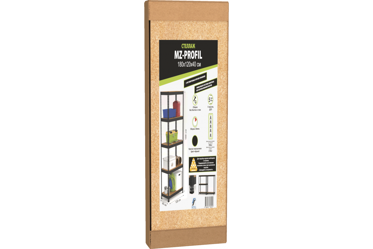 - Металлический стеллаж MZ-PROFIL изготовлен из качественной конструкционной холоднокатаной стали марки 20пс. Металлический стеллаж MZ-PROFIL представляет собой сборно-разборную безболтовую конструкцию, состоящую из четырех сборных вертикальных стоек, высотой 1.8 м, и пяти горизонтальных ярусов (ширина и глубина яруса зависит от модели).