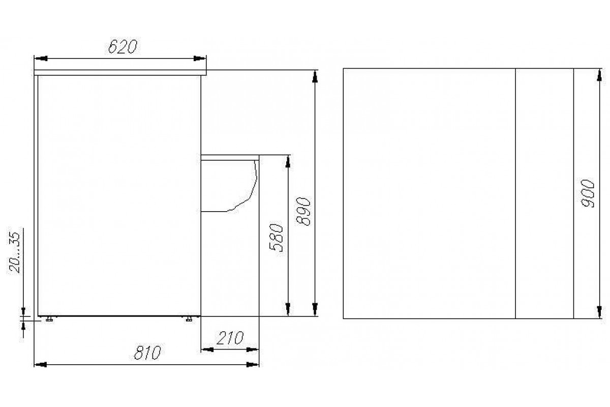 Длина без боковин, мм: 900