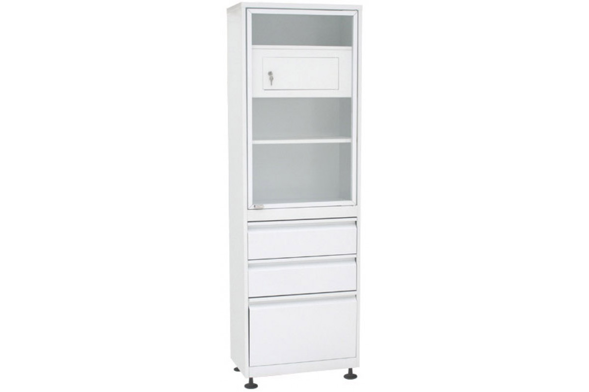 Шкаф 1-но створчатый стекло/металл ШМС-1-Т-Р-3 с трейзером с регулируемыми опорами с 3-мя ящиками