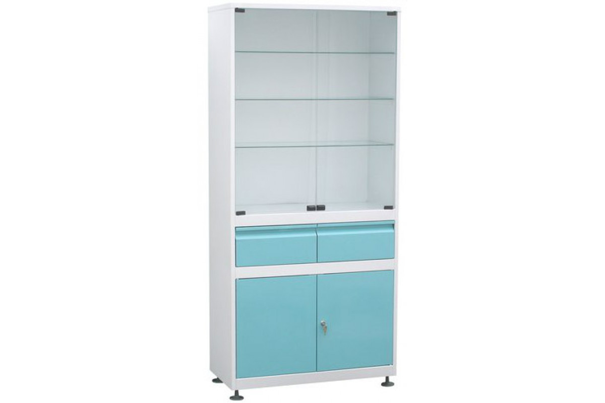 Шкаф 1-но створчатый стекло/металл ШМС-1-Т-Р-3 с трейзером с регулируемыми опорами с 3-мя ящиками