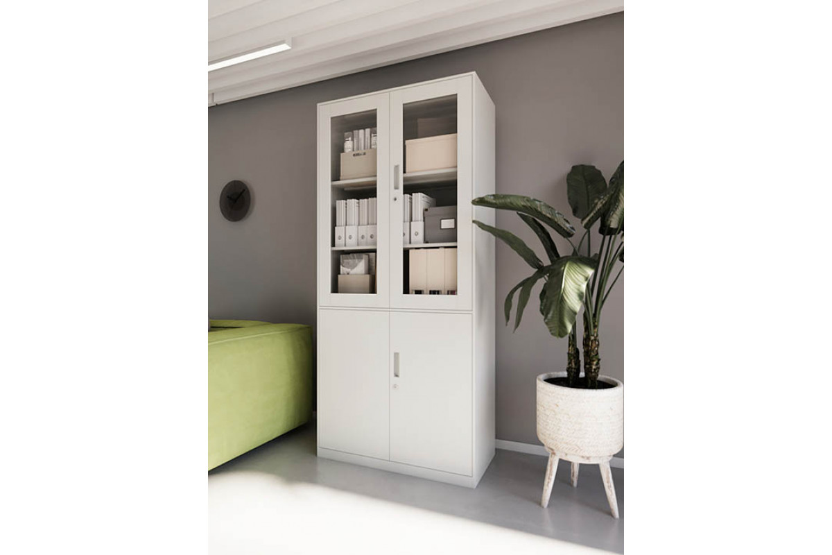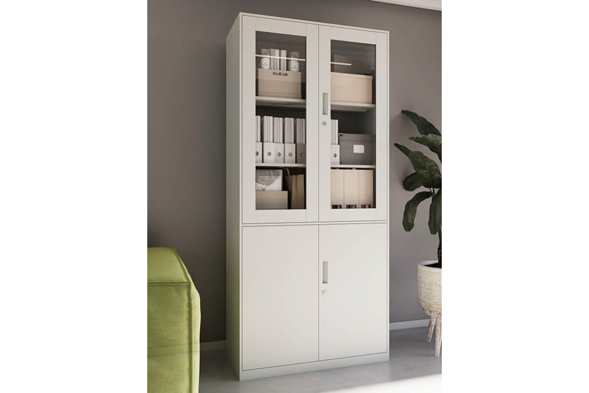 Архивный шкаф ШХА 850(40) РСМ — комбинированная металлическая модельс двумя отделениями, предназначенная для удобного и безопасного хранения документов,папок, материалов и офисного инвентаря. Верхняя секция со стеклянными дверьми обеспечиваетнаглядность и быстрый доступ к содержимому, а нижнее металлическое отделение подходитдля более закрытого и защищённого хранения.