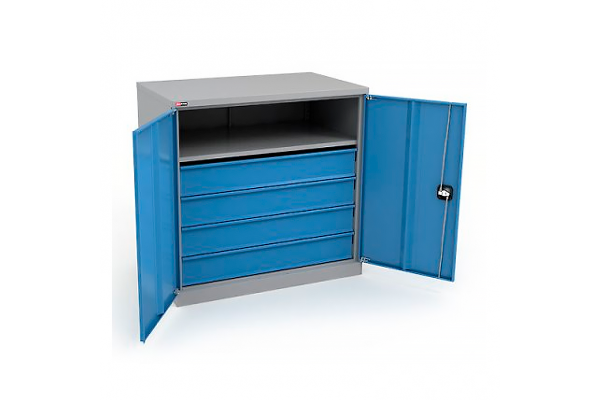 Цвет: корпус, аксессуары — серый RAL 7038, дверцы, ящики и экраны — синий RAL 5012
