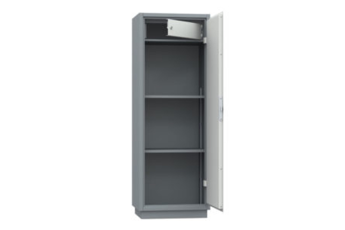 Вся линейка бухгалтерских шкафов окрашена в два цвета: корпус – RAL 7011 (благородный темно-серый), дверь — RAL7035 (светло-серый).