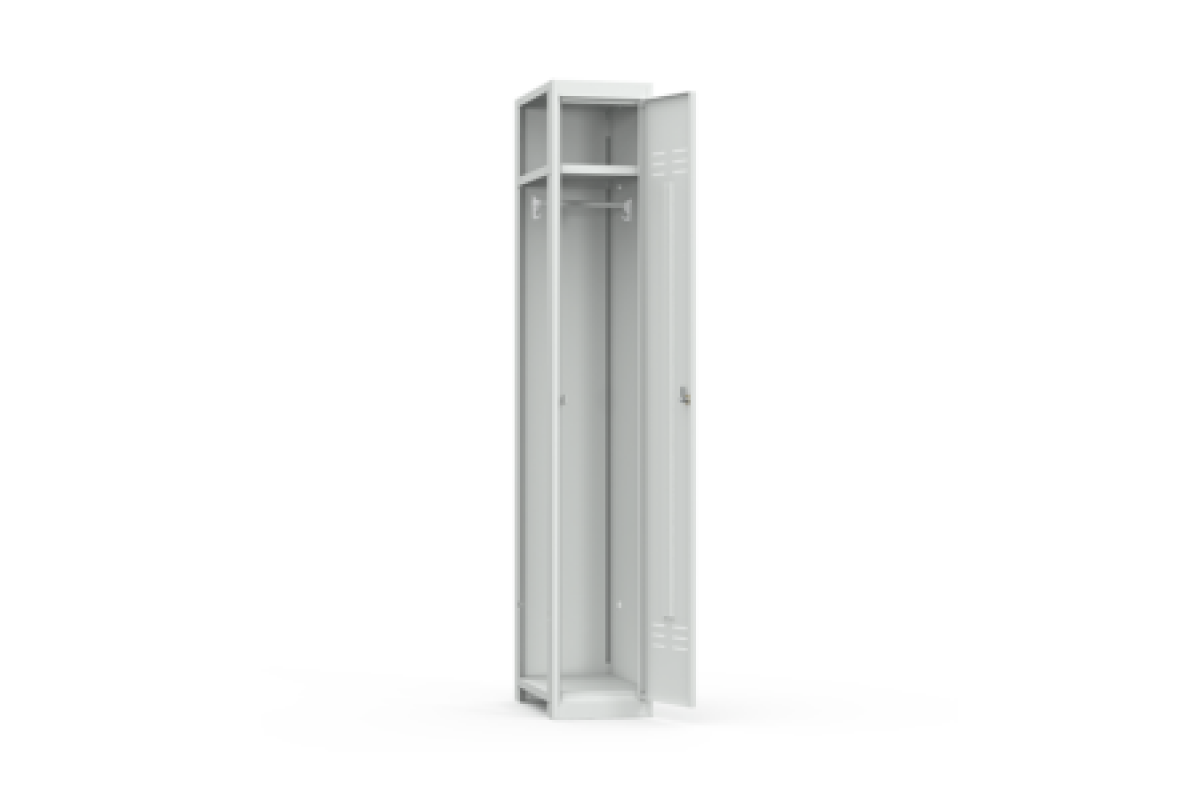Особенностью данного односекционного металлического шкафа является отсутствие боковой стенки. Данная особенность позволяет собрать модульную конструкцию из одной основной и дополнительных секций шкафа ШР-11 L400, существенно сэкономив бюджет. Дополнительная секция имеет полную внутреннюю комплектацию: полку для головных уборов, металлическую перекладину для вешалок и два пластиковых крючка для одежды, проушину для навесных замков. Размер секций обеспечивает комфортное размещение верхней одежды, в том числе зимней. Конструкция предусматривает возможность установки дополнительной полки для обуви.