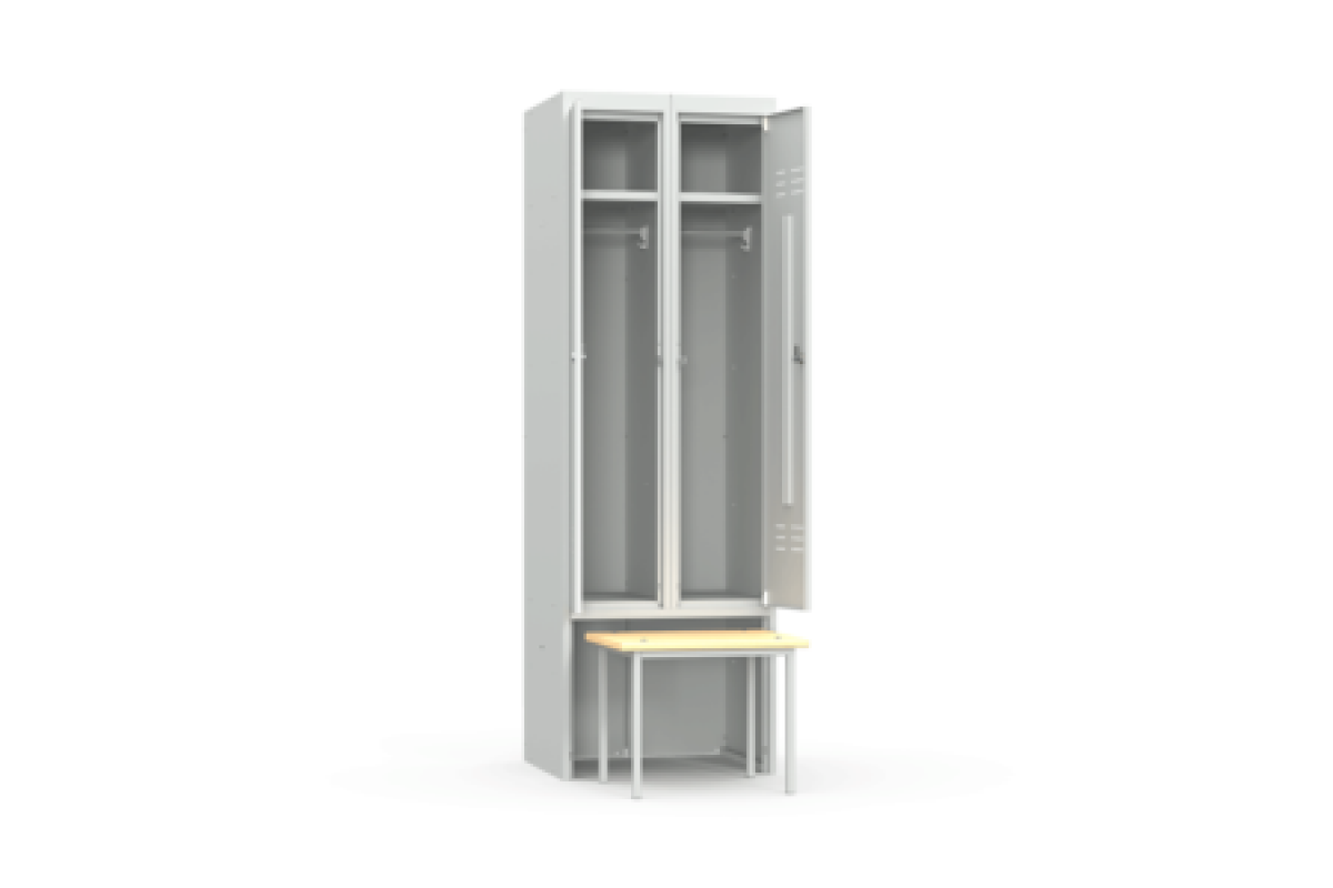 двухсекционный металлический шкаф для одежды отличается наличием двух секций с индивидуальными замками,