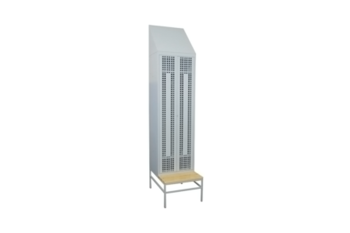 Шкаф металлический ШРС-22-600 с наклонной крышей и подставкой-скамьёй предназначен для хранения сменной одежды в производственных, учебных, спортивных и др. помещениях. Без скамь и наклонной крыши шкаф имеет габариты (ВхШхГ): 1850х600х500 мм.
