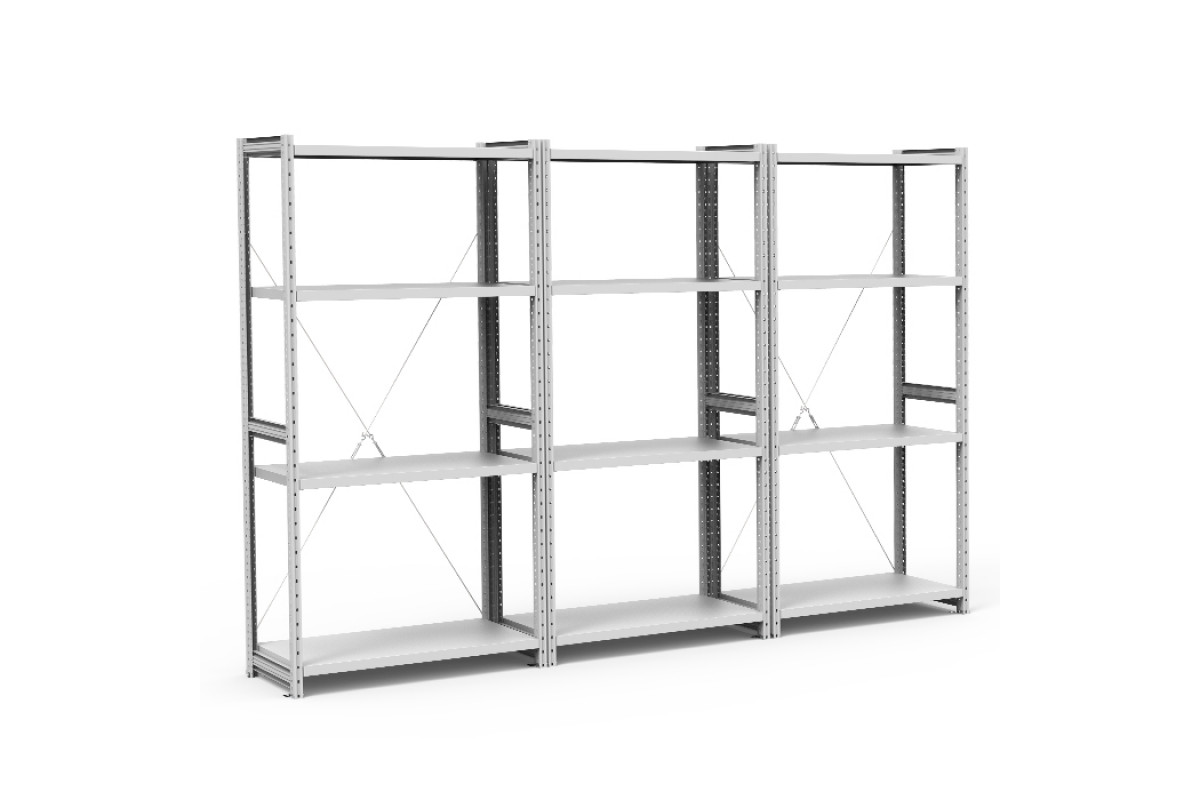 - Все элементы стеллажа окрашены полимерной (порошковой) краской RAL 7035 светло-серого цвета.