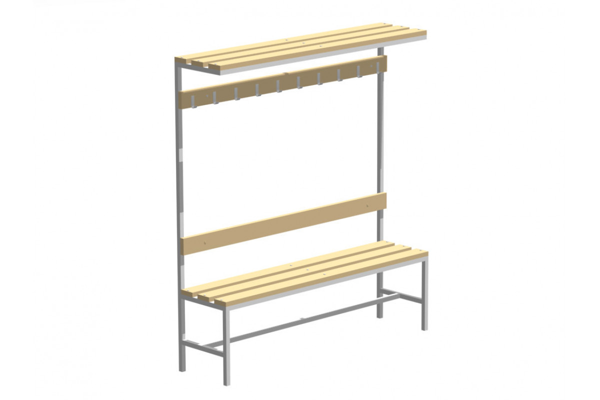 Скамья гардеробная двусторонняя с вешалкой и полкой под головные уборы С-1500 Липа