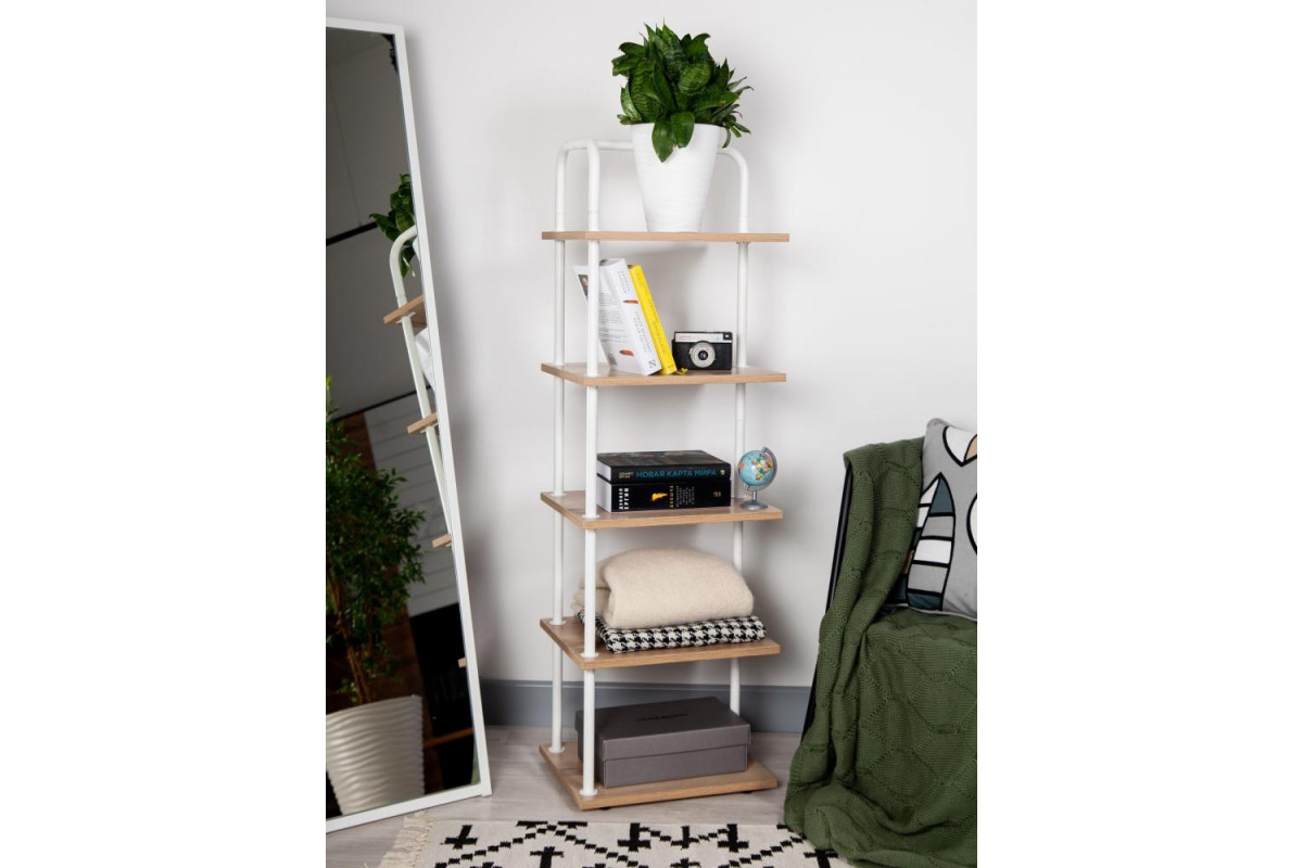Стеллаж Отрада узкий с 5 полками из ЛДСП, 400х330х1260Н, белый/дуб в Новокузнецке