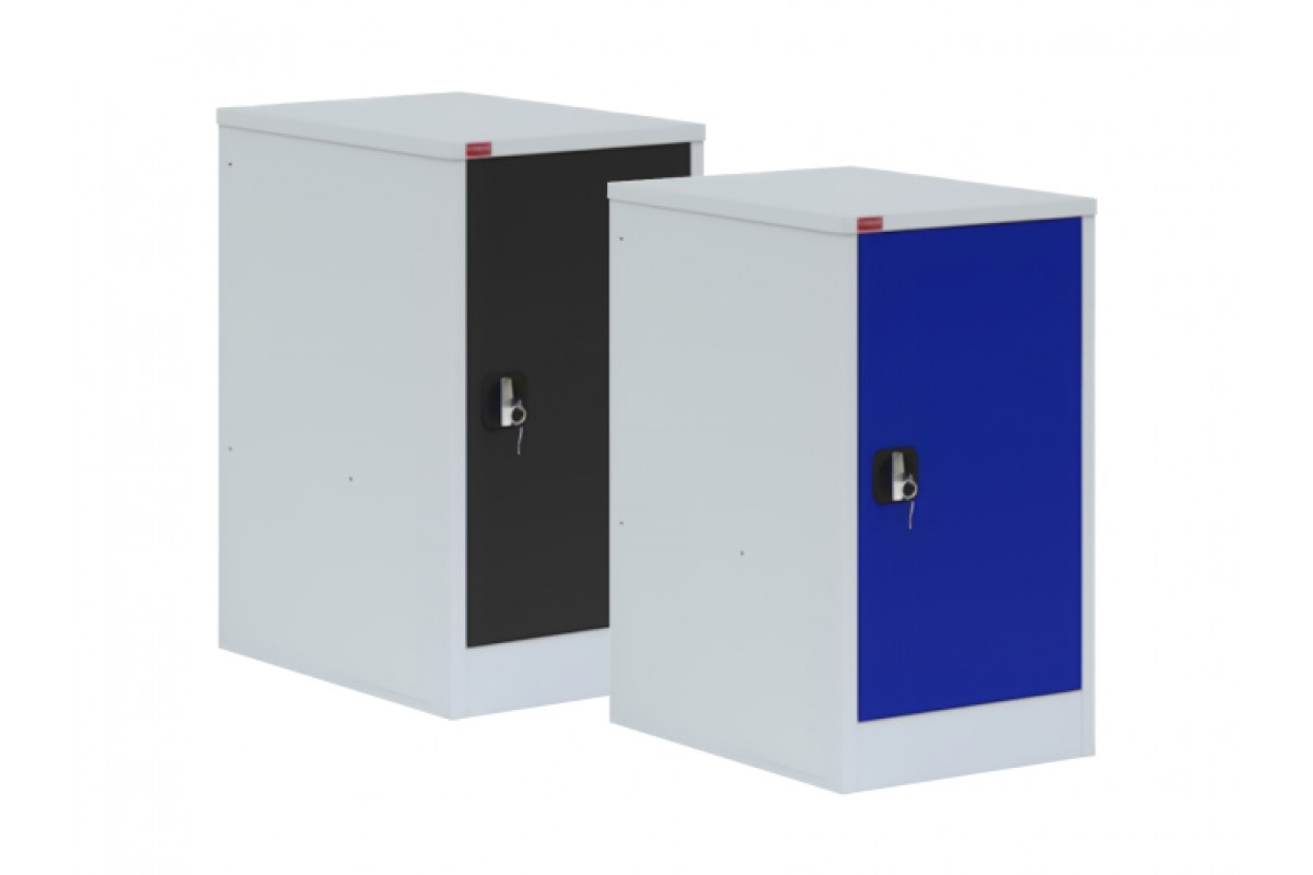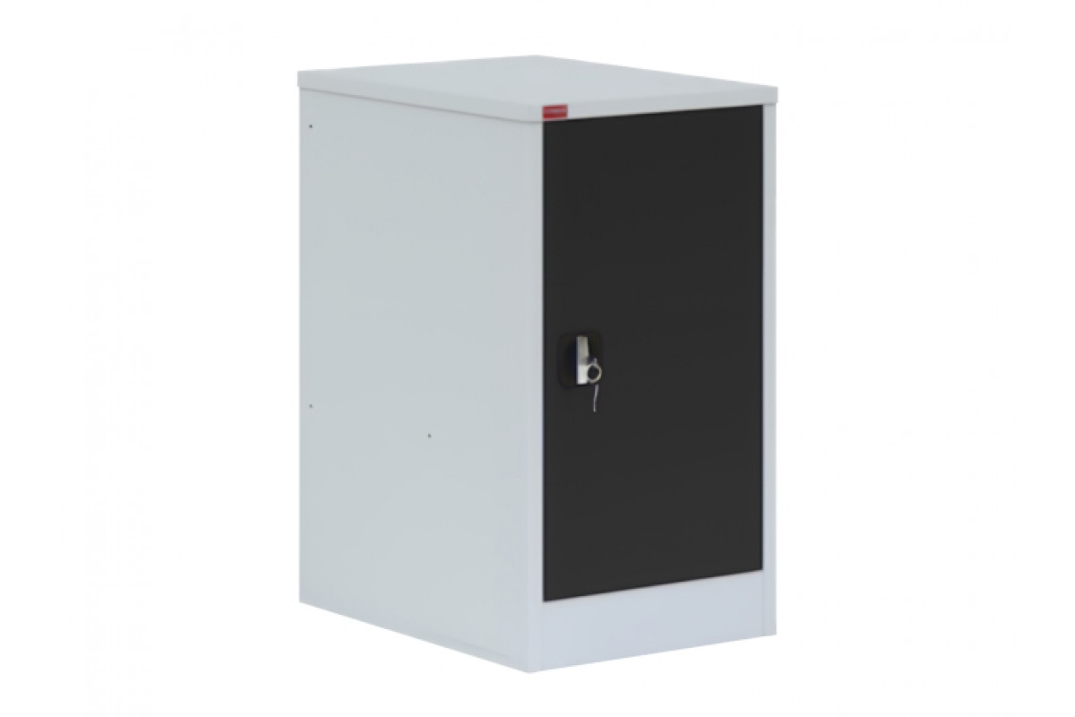 Тумба для металлического верстака может использоваться как с верстаком, так и как отдельный элемент металлического мебели. Комплектуется двумя съемными полками (нагрузка до 30 кг) и дверью, которая запирается замком повышенной секретности. Дверь можно