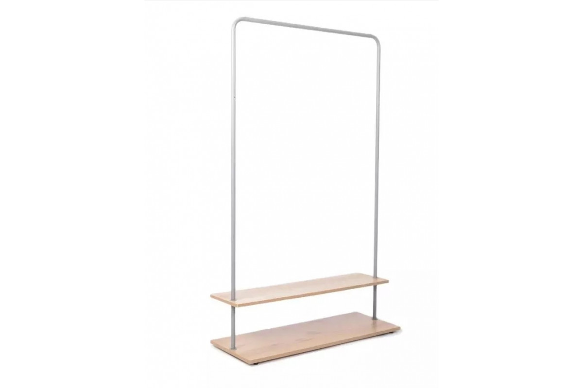 Вешалка напольная Отрада с двумя полками для обуви из ЛДСП, 910х330х1500Н, серая/дуб в Новокузнецке