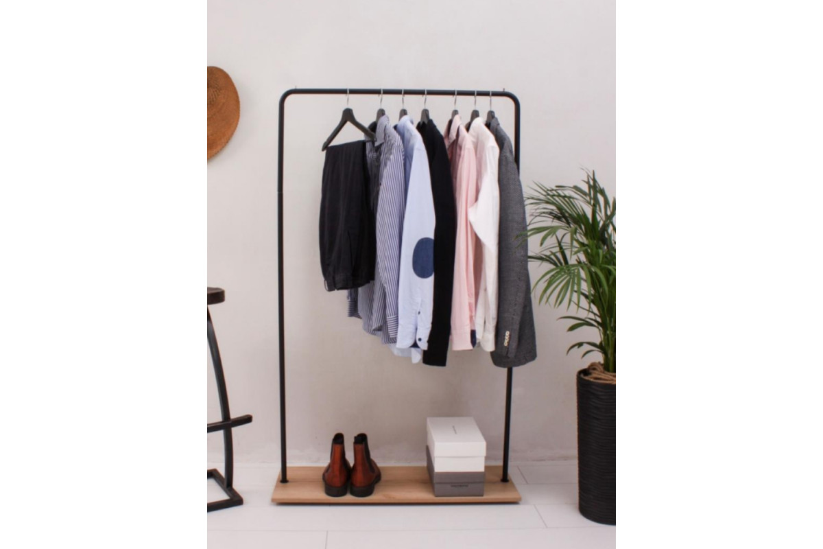 Вешалка напольная Отрада с пятью полками для одежды и обуви из ЛДСП, 1000х330х1500Н, черная/черная