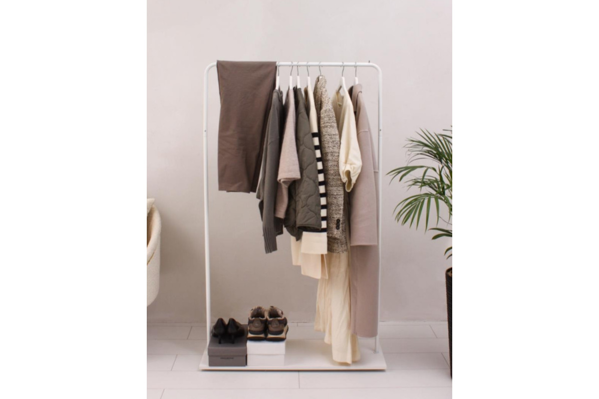 Вешалка напольная Отрада с пятью полками для одежды и обуви из ЛДСП, 1000х330х1500Н, белая/белая