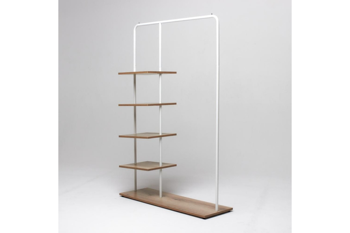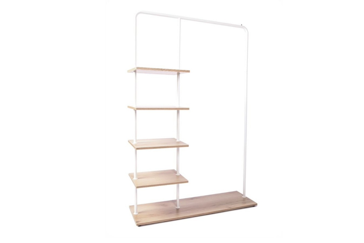 Вешалка напольная Отрада с пятью полками для одежды и обуви из ЛДСП, 1000х330х1500Н, серая/дуб в Новокузнецке