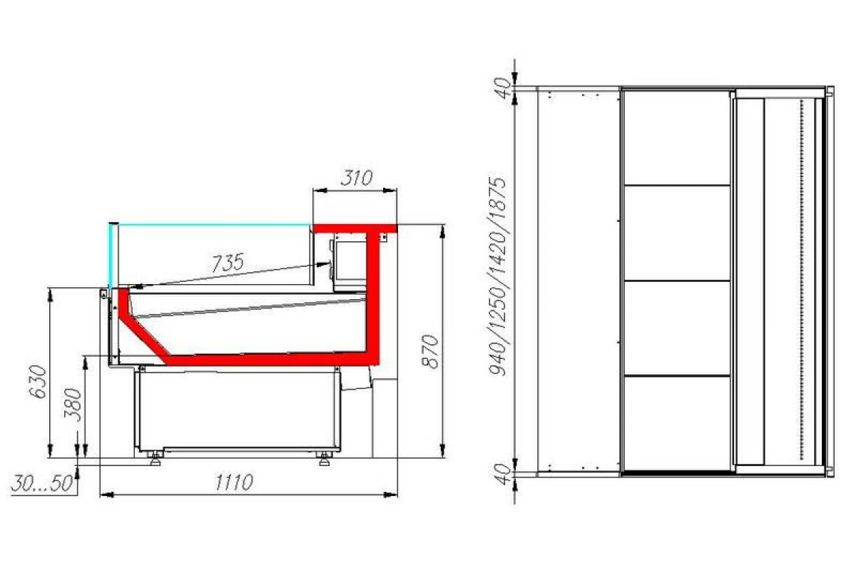 - низкопрофильное остекление – расположение стеклопакетов с трех сторон выкладки.