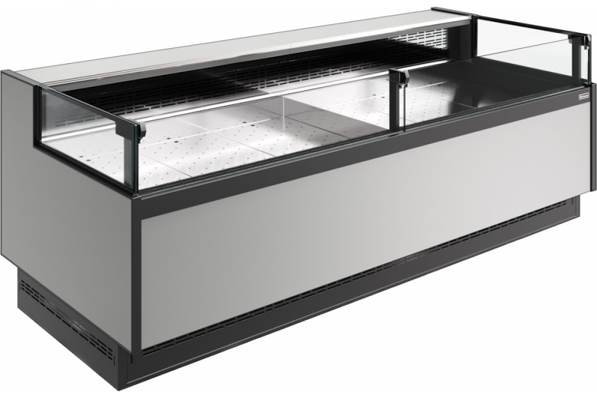 Витрина для рыбы Carboma GC110 SP 2,0-2 (версия 2.0) без боковин, открытая, Паттерн 0108 Темный дуб - оборудование из серии BAVARIA 4, предназначенное для охлаждения, кратковременного хранения и демонстрации разнообразных морепродуктов. Оснащена статической системой охлаждения. Рекомендуется к применению в магазинах, супермаркетах и на других предприятиях общественного питания и торговли.