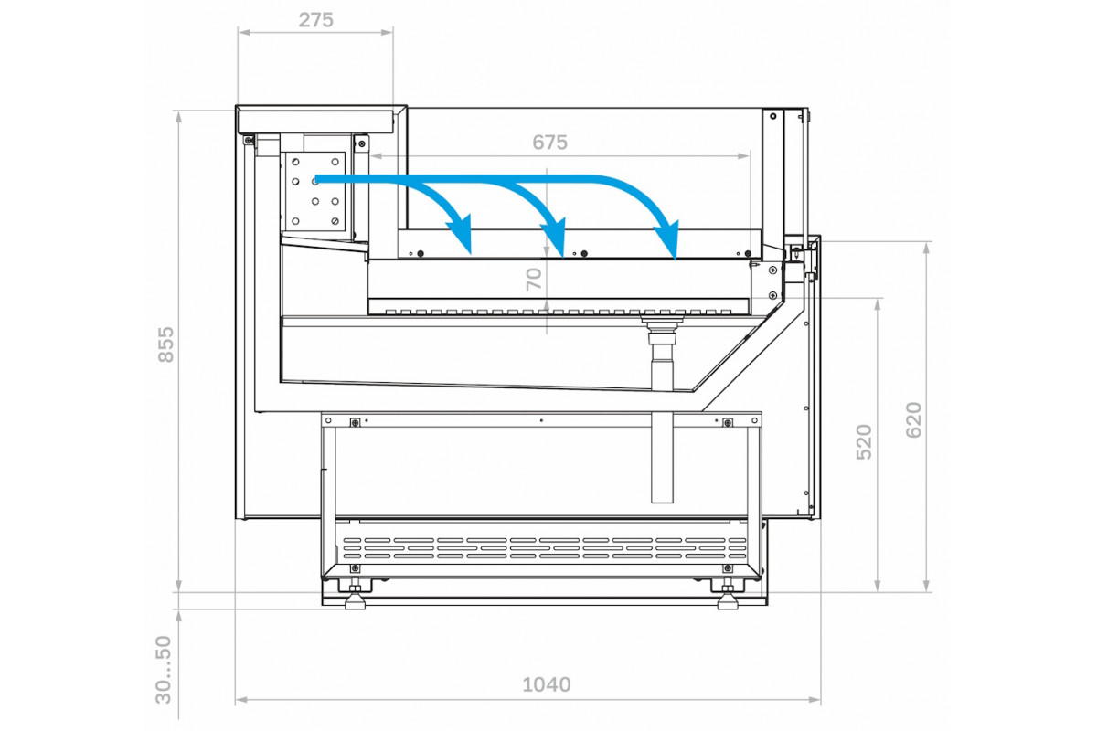 - Экспозиционная поверхность и столешница изготовлены из шлифованной нержавеющей стали;