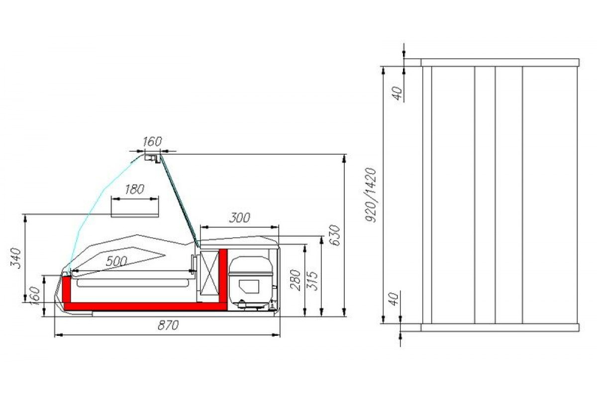 Витрина холодильная настольная Carboma A87 SM 1,0-1 (ВХС-1,0 Арго) (ВХС-1,0 Арго 0011-3020 (бок сер, декор красн))