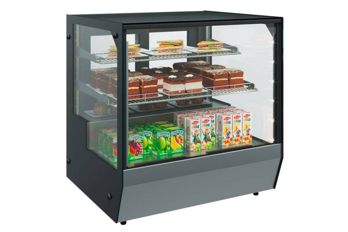 Витрина холодильная настольная Carboma AC59 VV 1,2-1 (0430) компактная, мобильная витрина идеальна для небольших кафе, баров с большой проходимостью, когда требуется снизить нагрузку обслуживающего персонала. Витрина оснащена раздвижными створками-слайдерами со стороны продавца. Современный, стильный кубический дизайн. Стабильный температурный режим, благодаря динамическому охлаждению и наличию стеклопакетов.