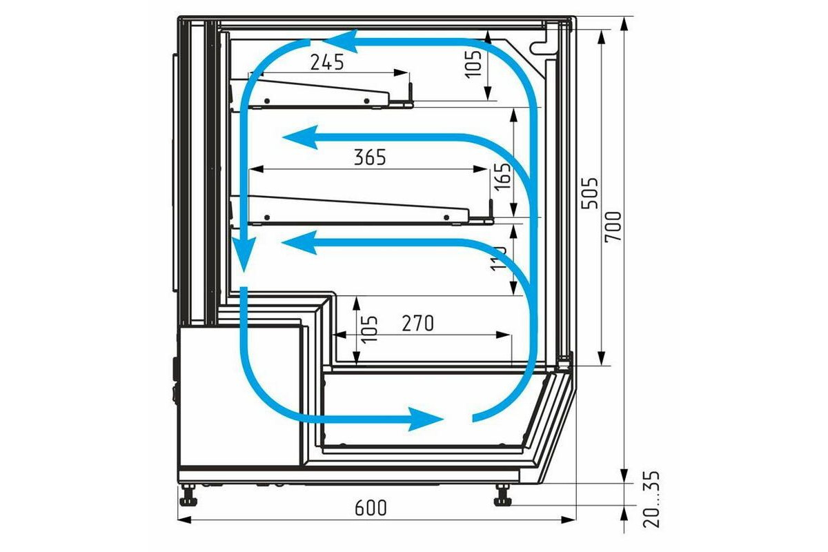 - Витрина должна быть установлена не ближе 2 м от отопительных приборов. Запрещается эксплуатация витрины при попадании на нее прямых солнечных лучей, воздушных потоков от кондиционеров, вентиляторов и обогревателей;