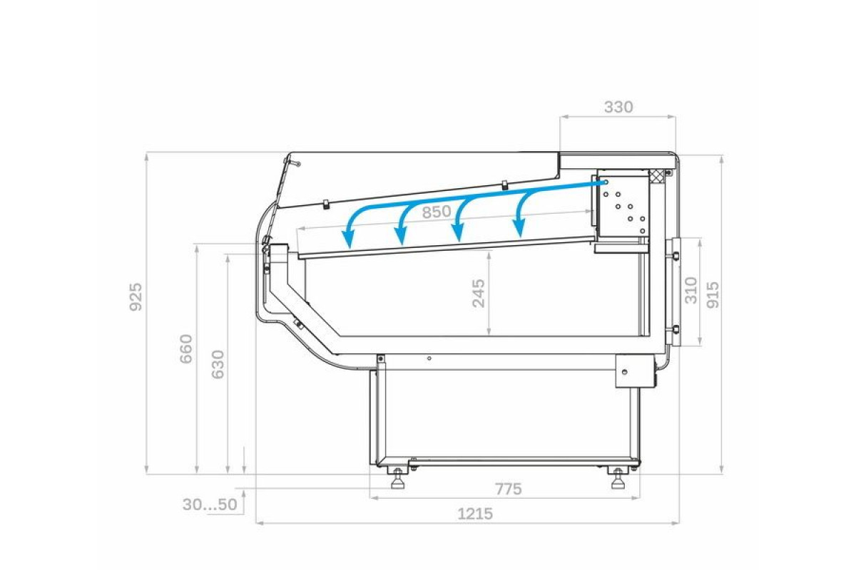 Диапазон регулировки опорных ножек, мм: 30-50