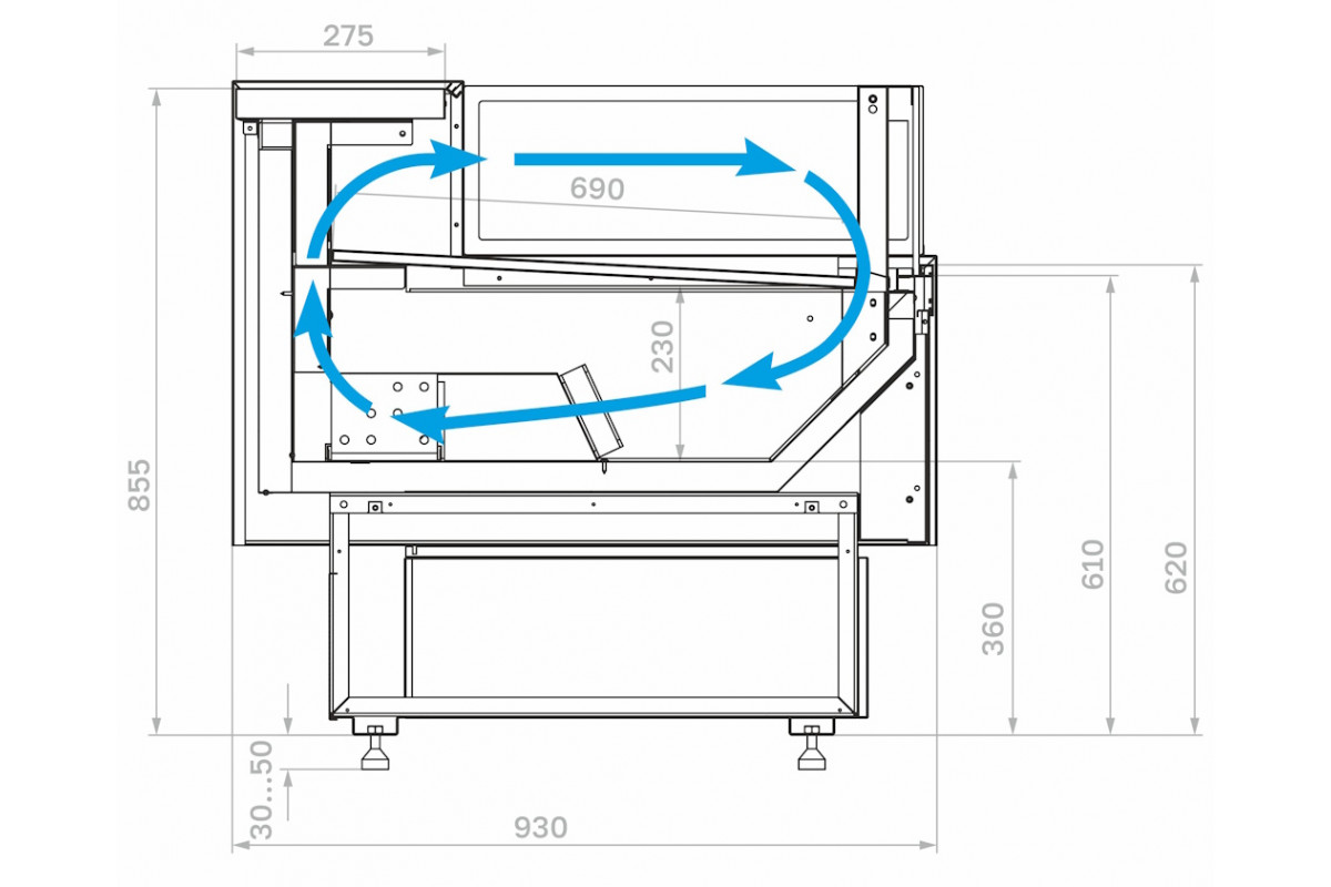 - Экспозиционная поверхность и столешница изготовлены из шлифованной нержавеющей стали;