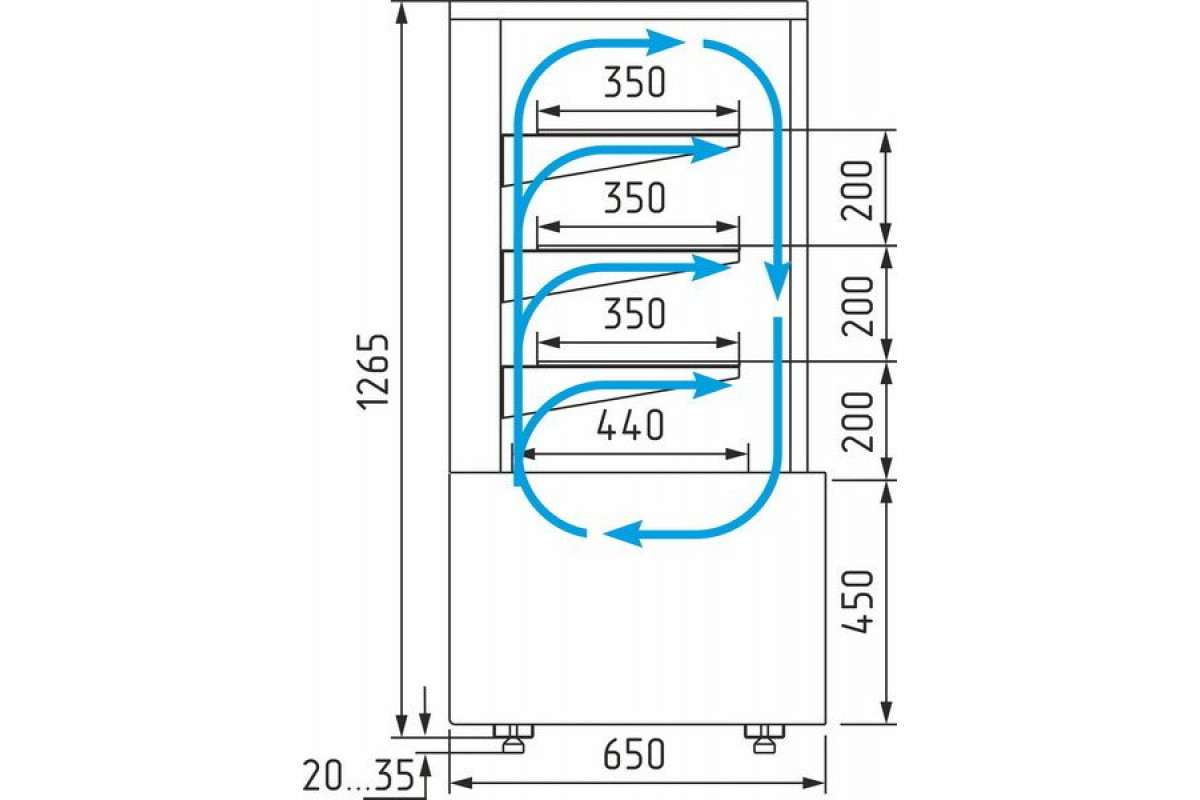 - глубина выкладки 440 мм + 3 стеклянные полки глубиной 350 мм, каждая с LED-подсветкой.