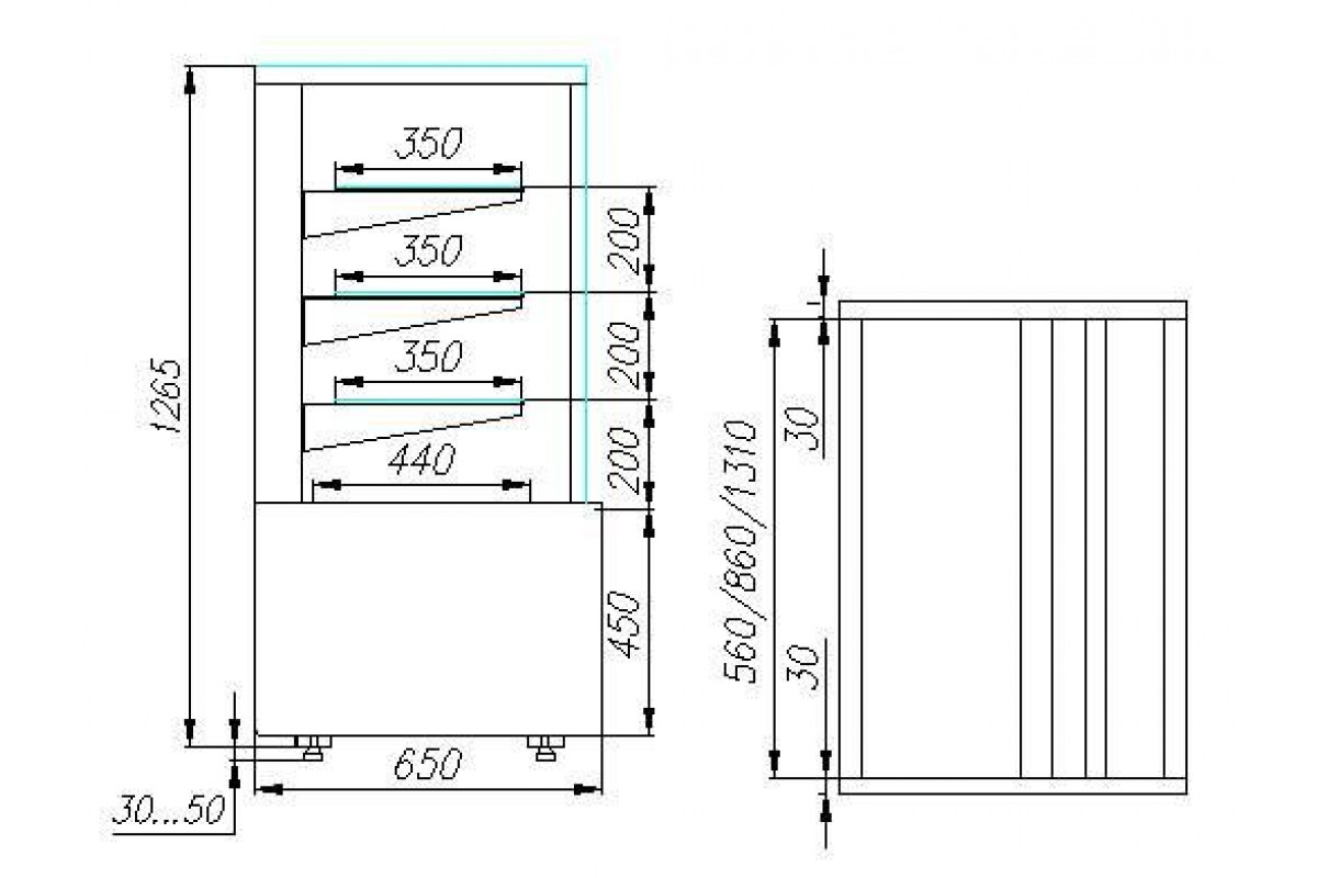 Витрина кондитерская Carboma KC70 VM 0,6-1 Light 9006-9005 (ВХСв-0,6д Carboma Cube Техно)