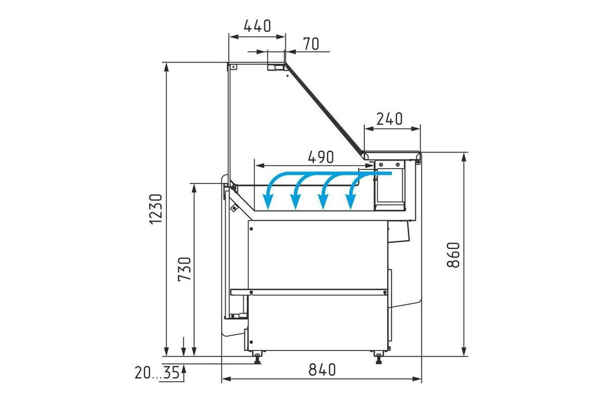 - столешница, площадь выкладки – нержавеющая, шлифованная сталь;