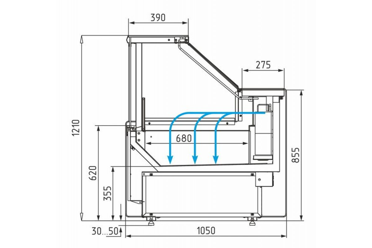 Отдельностоящие витрины приобретаются только вместе с боковинами. При заказе нескольких витрин с одинаковым температурным режимом для установки в линию достаточно заказать 2 боковины на всю линию.