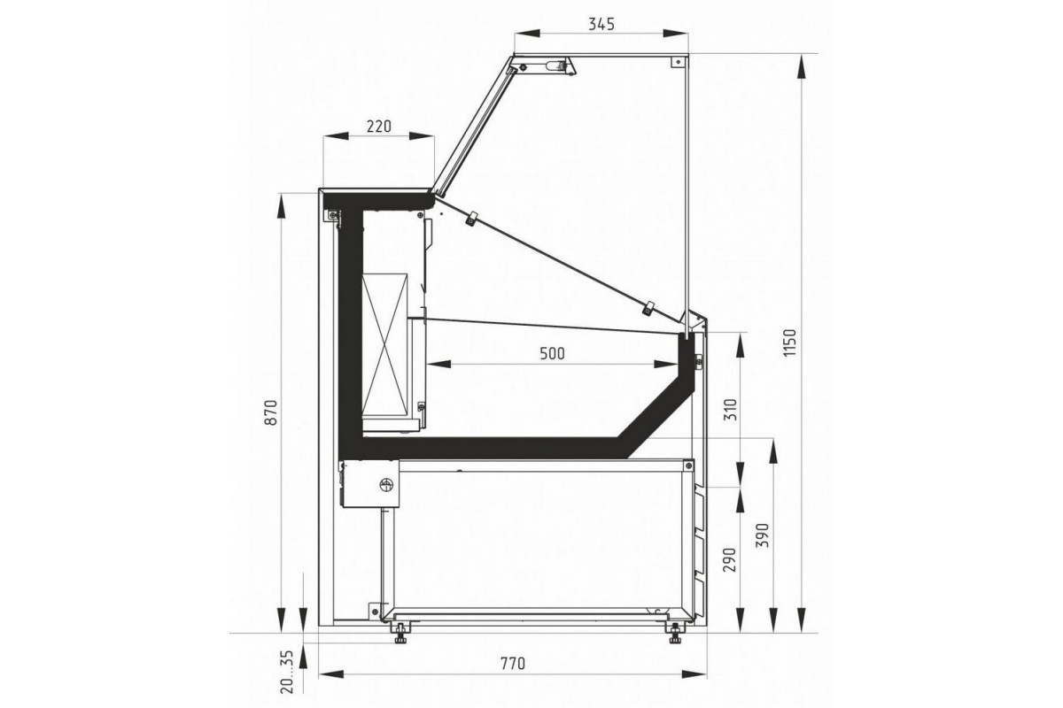 - Витрина предназначена для эксплуатации в закрытом помещении с естественной вентиляцией при температуре окружающей среды от +12 до +25 и относительной влажности не более 60%;